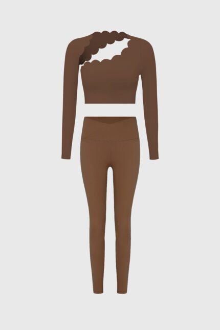 Asymmetrical Long Sleeve Crop Top + V-waist Yoga Legging