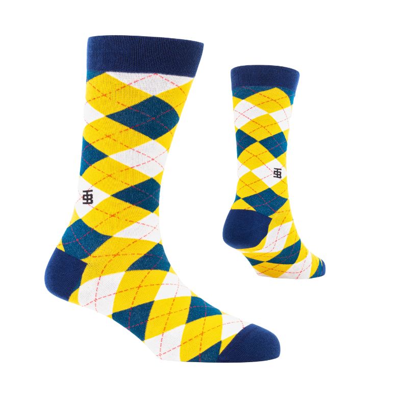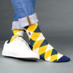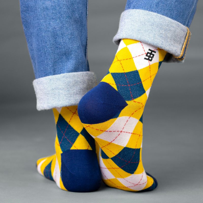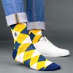 Shop the best Denim Argyle Edition SockSoho Men Socks – Premium Compact Combed Cotton in Blue, White, and Yellow color pattern. Elevate your style with these fashionable and comfortable argyle socks. Perfect for any occasion, these premium socks ensure unmatched softness and durability.
