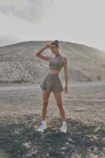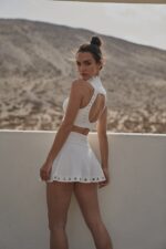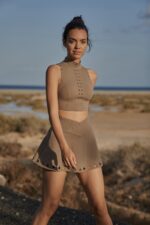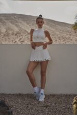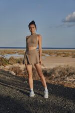 Embrace the street style with this high-neck bra made from breathable and butter-soft fabric, the cutout back design and laser-cut details provide necessary ventilation and a fashion-forward edge. Pair with this high-rise tennis skirt featuring comfortable inner shorts and a flattering V-waist. Experience ultimate comfort and elegant with our High Neck Laser Cut Leisure Bra & V-waist Laser Cut Tennis Skirt bundle.