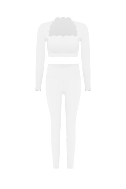 Scallop Cropped Long Sleeve Top + V-waist Yoga Legging
