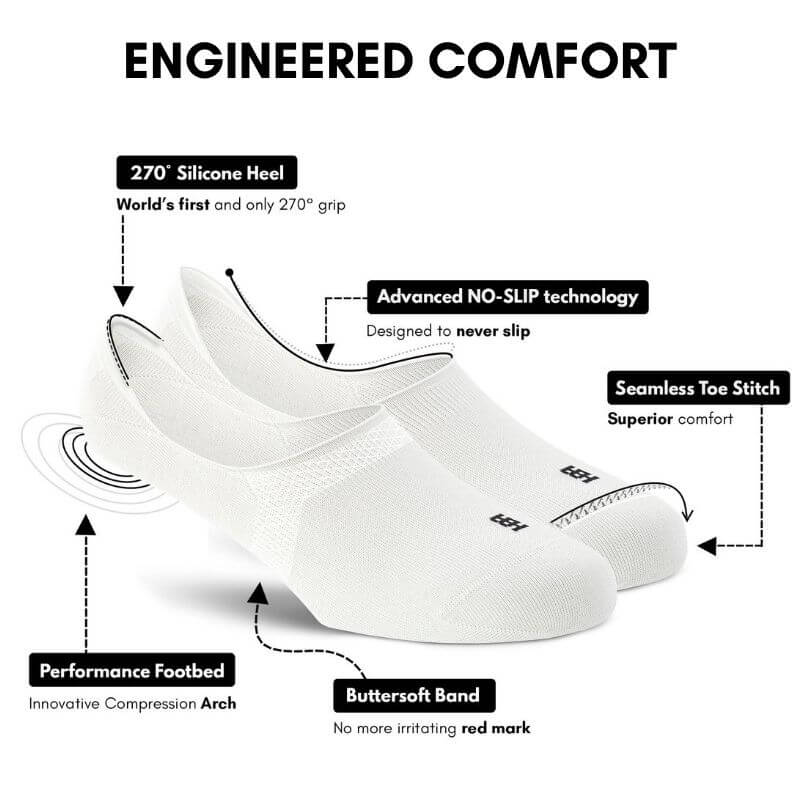 SockSoho No-Show socks are engineered with revolutionary technology that ensures a slip-free experience even after 18 hours of wearing them. Now you can walk easily without getting bothered by your loafer socks slipping or tucking in your shoes all the time!