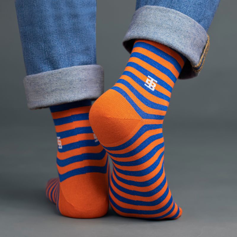 Elevate your sock collection with SockSoho’s Sunrise Stripe Edition – a vibrant fusion of bright blue and orange stripes. Immerse your feet in the bold hues of sunrise with these premium designer socks crafted exclusively for men. Walk in style and comfort as you embrace the dynamic energy of Sunrise Stripes, a distinctive addition to SockSoho’s sophisticated and trendsetting sock lineup.